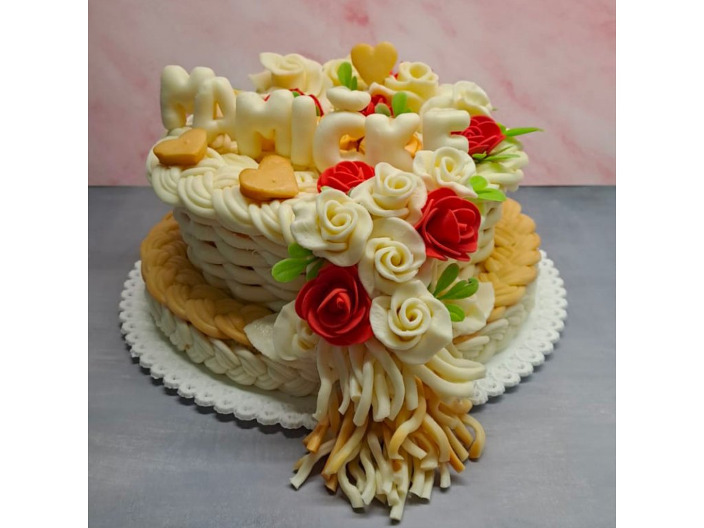 Náš sýrový dort je připraven z těch nejlepších pařených sýrů, které jsme vybrali s láskou a péčí. Díky tomu má jedinečnou chuť a vůni, kterou si zamilujete. A aby toho nebylo málo, vršek dortu zdobí krásný text, který vaší mamince připomene, jak je pro vás důležitá.