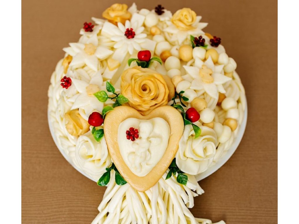 Figurka andílka je vyrobena z uzeného nebo neuzeného sýra, vždy dle skladových možností.